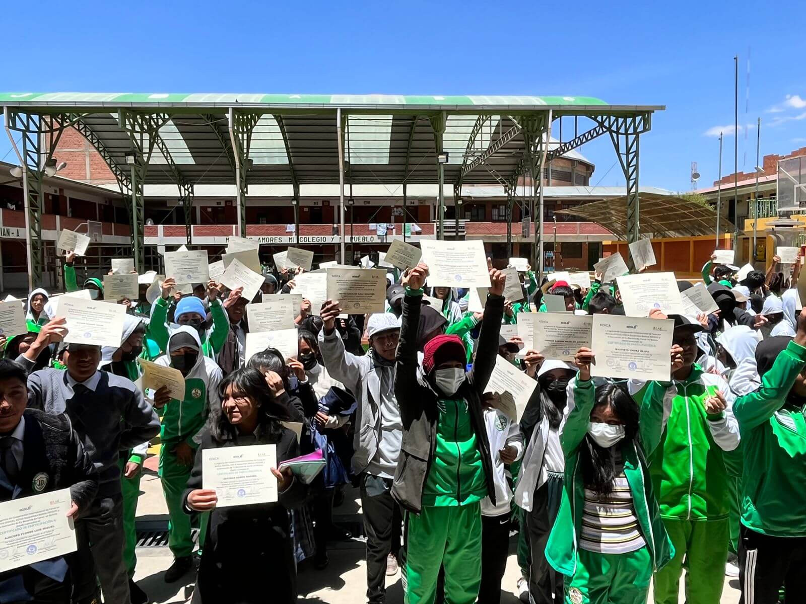 Así también el día 3 de Noviembre, satisfactoriamente se llevó a cabo la clausura de los talleres con la entrega de certificados de participación a más de 210 estudiantes que fueron parte de esta formación y que esperemos puedan replicar todo lo enseñado. Por otra parte también se hizo la entrega de donación de material que ayudarán al colegio en su educación y salud.